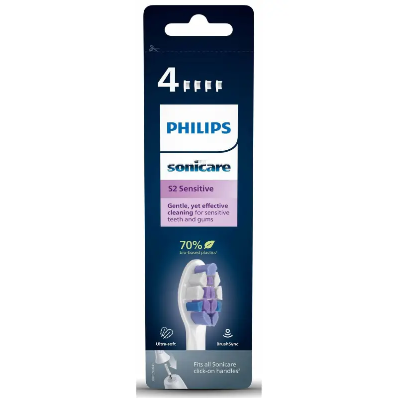 Końcówki Philips Sonicare Sensitive są kompatybilne ze wszystkimi szczoteczkami sonicznymi (z wyjątkiem serii Elite). Idealnie sprawdzają się w podróży, dzięki możliwości zabezpieczenia ich specjalnymi nakładkami. Badania pokazują, że są aż o 25% delikatniejsze od końcówek ProResults.
